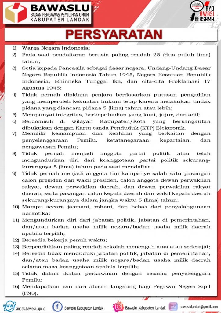 Jadwal Pembentukan dan Persyaratan Calon Anggota Panwaslu Kecamatan Dalam Rangka Pemilu Serentak Tahun 2024