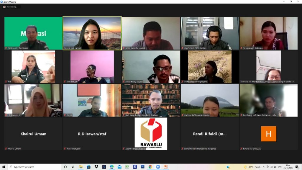 Bawaslu Provinsi Kalbar kembali mengadakan kegiatan melalui daring. Topik kali ini adalah Sosialisasi Sistem Informasi Penyelesaian Sengketa (SIPS). Hadir undangan zoom meeting ini meliputi para pimpinan dan secara khusus para staf di lingkungan Bawaslu Kabupaten/Kota. Sebagai tuan rumah kegiatan ini dipercayakan kepada Bawaslu Kabupaten Landak, pada hari Senin (29/11/2021).
