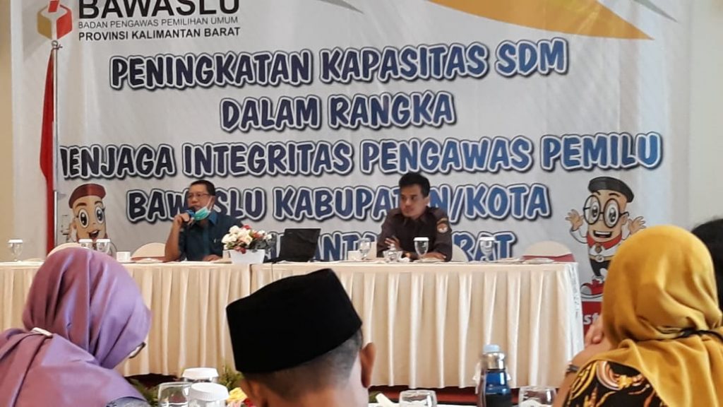 \nTopik pertemuan mengambil tema; Peningkatan Kapasitas SDM dalam rangka Menjaga Integritas Pengawas Pemilu Bawaslu Kabupaten/Kota Se Kalimantan Barat.