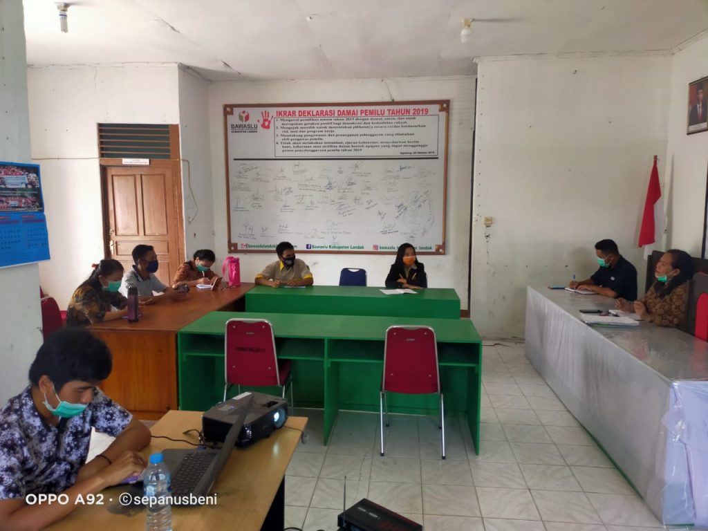Badan Pengawas Pemilihan Umum Kabupaten Landak melaksanakan kegiatan Peningkatan Kapasitas SDM tentang Penanganan Pelanggaran Pemilu, yang dilaksanakan oleh Divisi Penanganan Pelanggaran Bawaslu Kabupaten Landak, Kamis (22/10/2020).