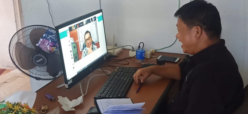 Ketua Badan Pengawas Pemilihan Umum Kabupaten Landak sekaligus Kordiv. Pengawasan dan Hubungan Antar Lembaga, Petrus Kanisius Ng mengikuti kegiatan Rapat Sosialisasi Riset Evaluasi Pelaksanaan Pilkada Serentak di Indonesia melalui Zoom Meeting, jumat (19/6/2020).